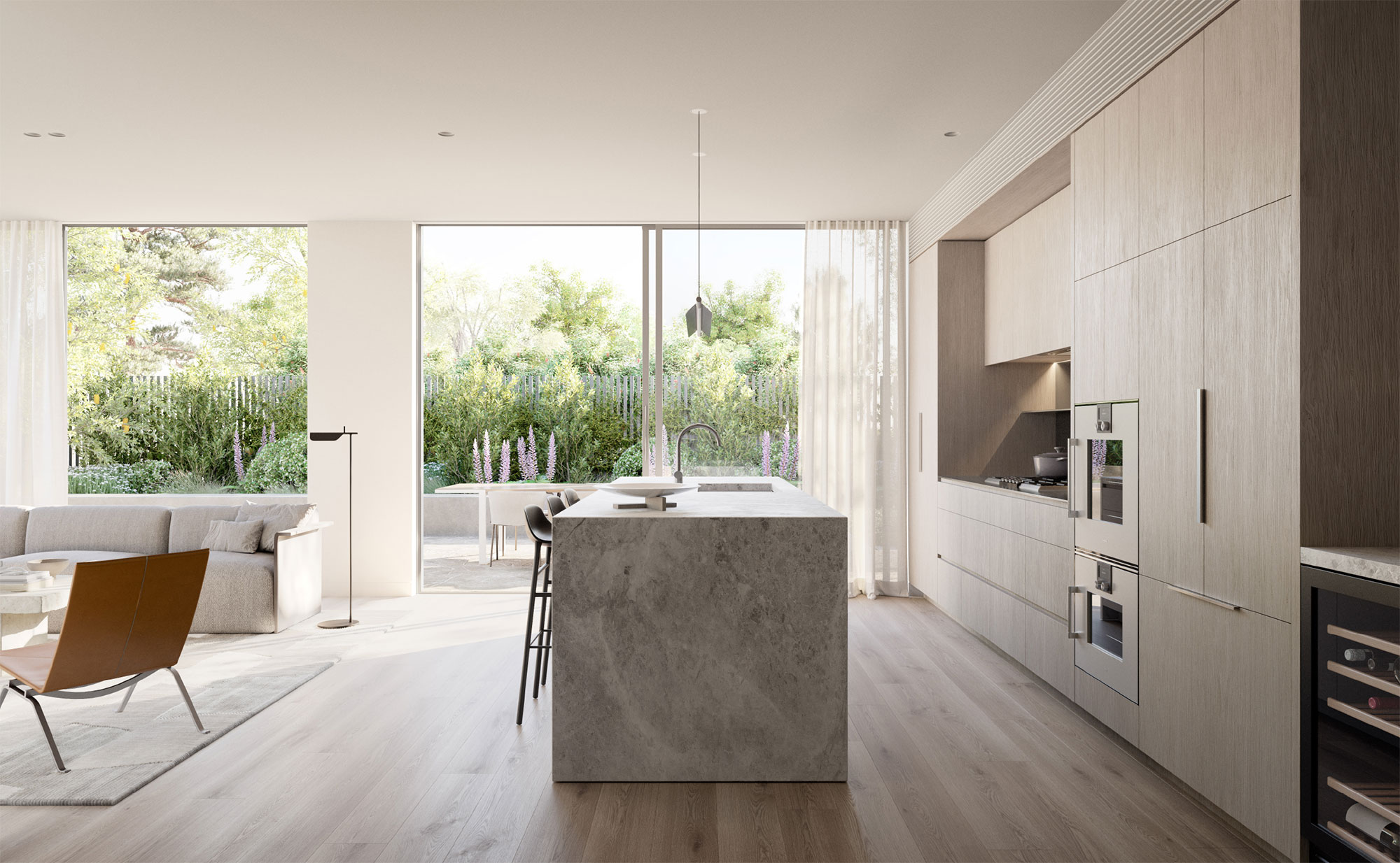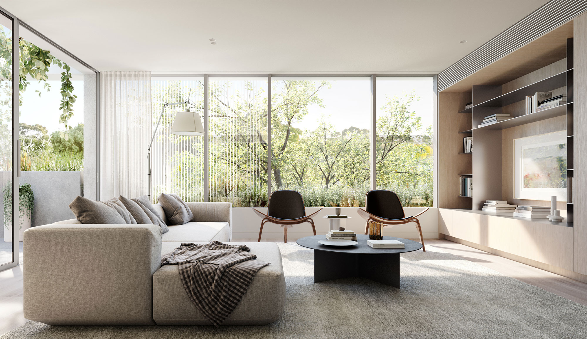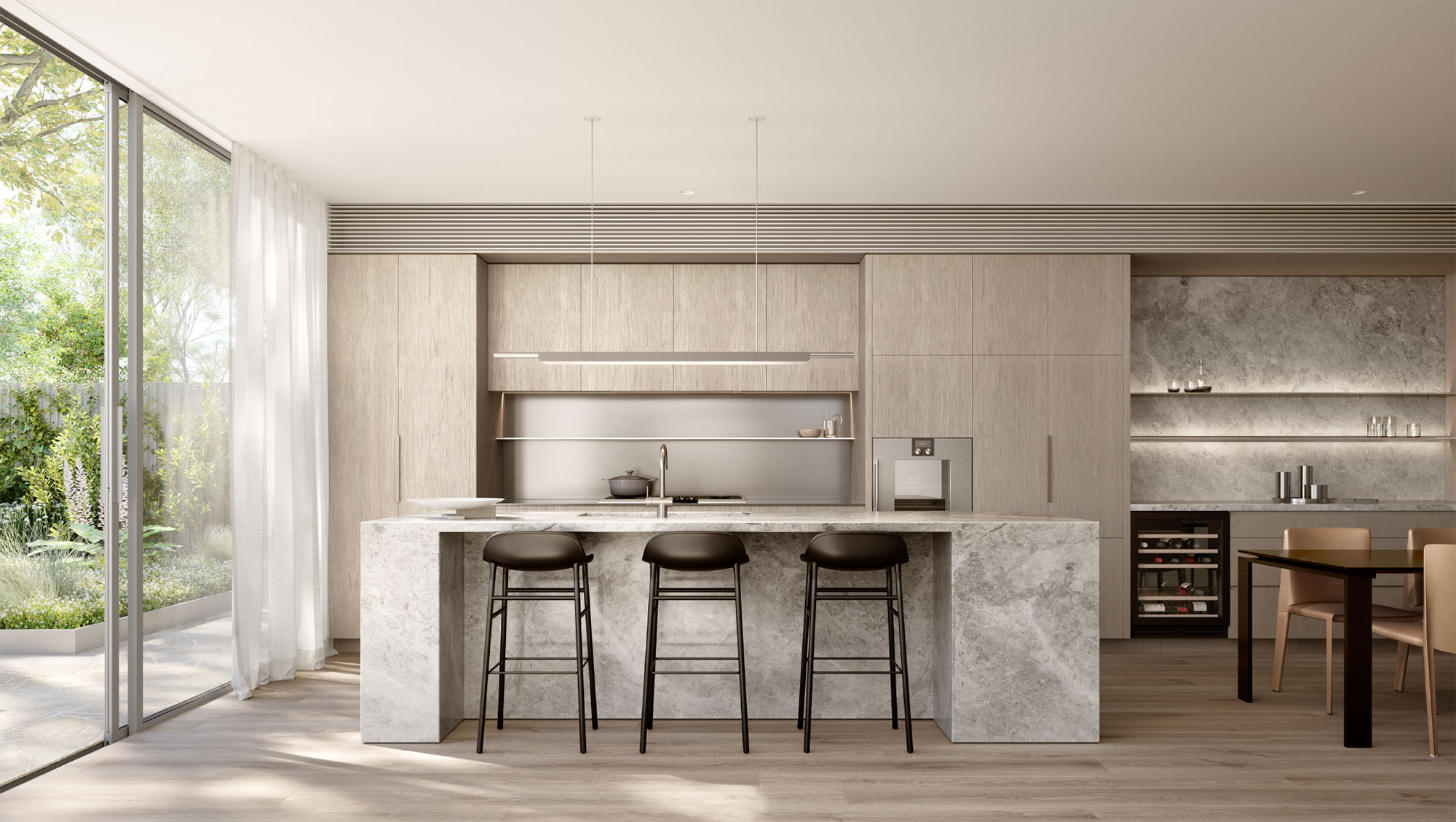 Epitomising refined luxury, the interiors of Alexander Park are underpinned by carefully crafted details, natural finishes and grand, house-like proportions. Visual connections to surrounding greenery create a sense of being completely immersed in nature.