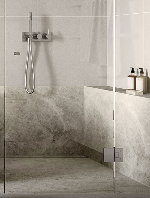 Defined by a texturally rich selection of finishes, the ensuite has been designed to cultivate an overwhelming sense of calm.